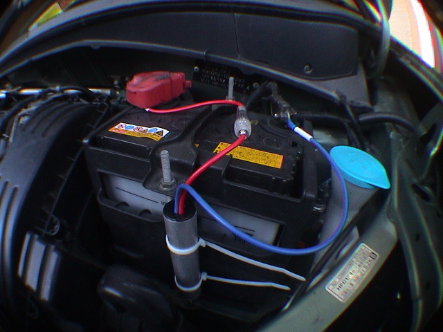 取り付けは至って簡単。バッテリーのプラスとマイナスに繋ぐだけ。(誰にでもできそう)