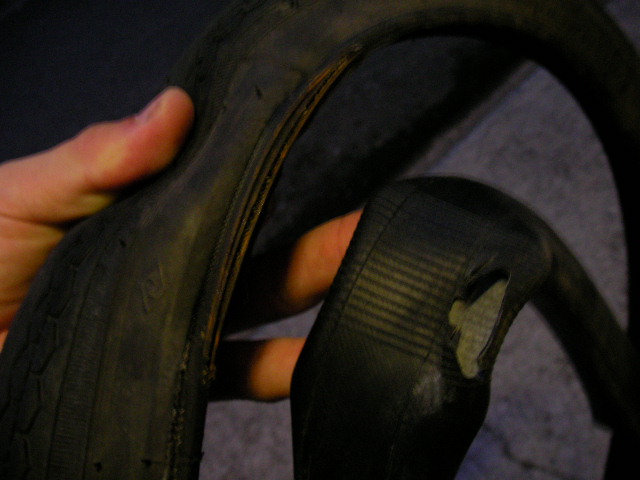 さらに、外側のタイヤも内側のワイヤーがめくれてるし。。。